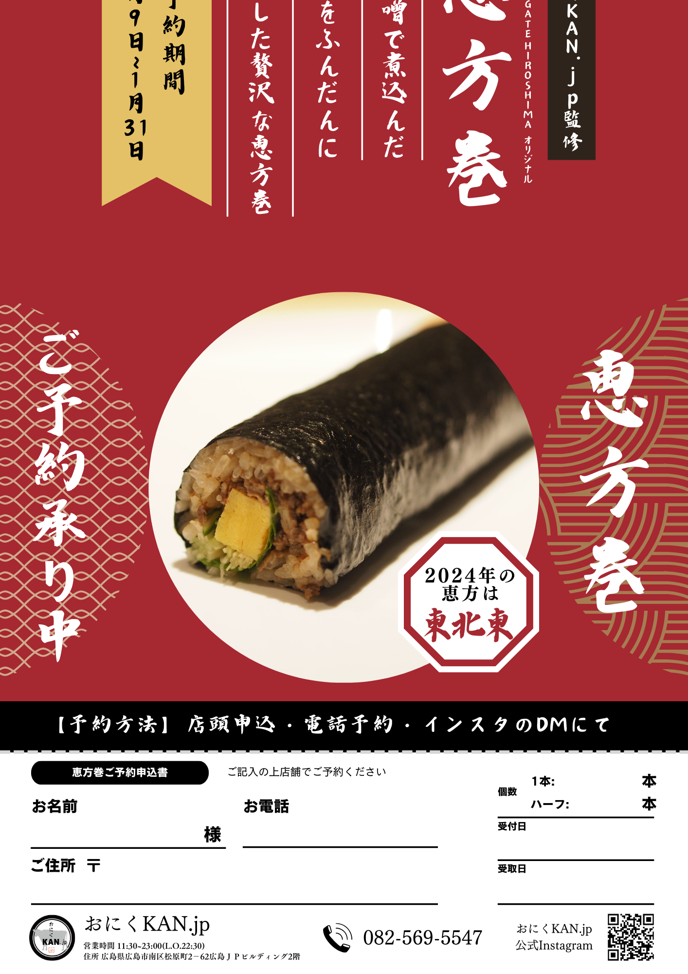 【お知らせ】おにくKAN.jp監修 GRAND GATE HIROSHIMAオリジナル恵方巻 予約開始しました